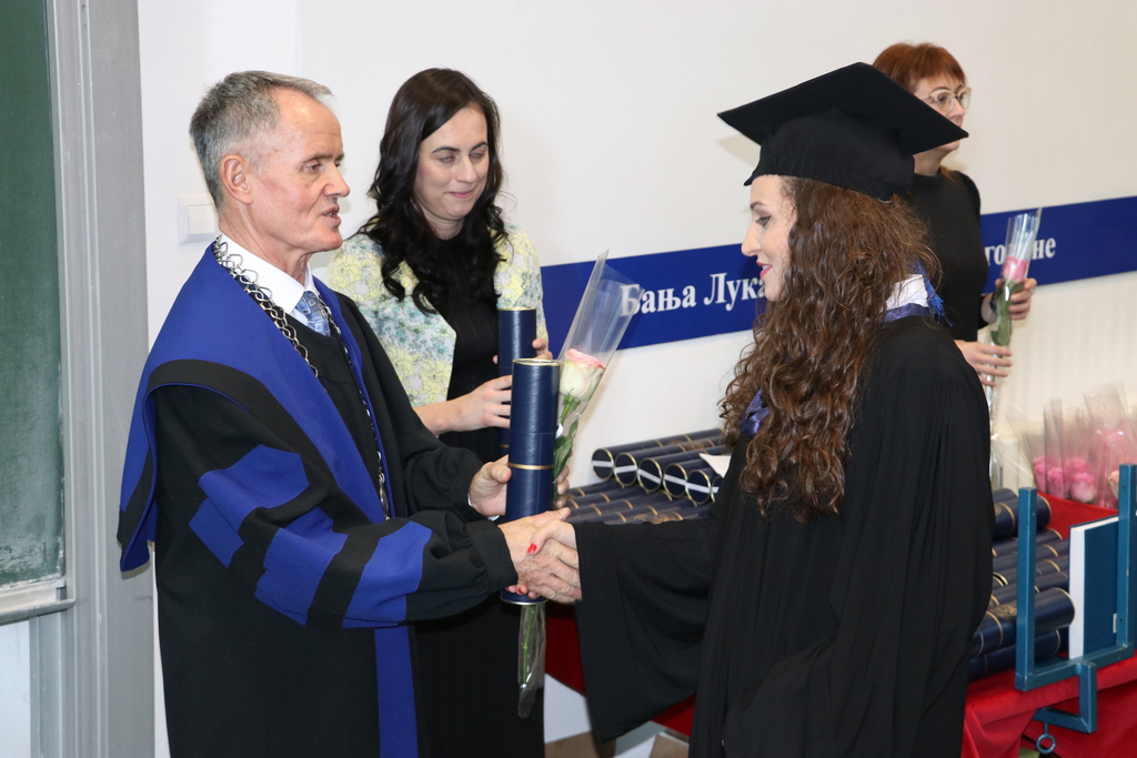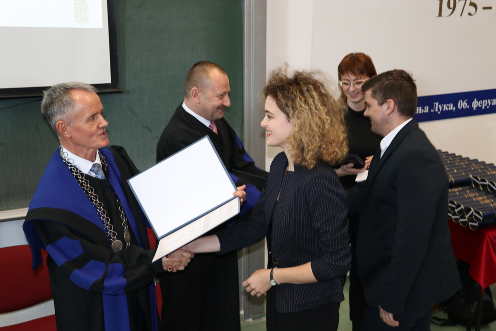 On behalf of the University, the ceremonial academy was also attended by the Vice-Rector for International and Inter-University Cooperation Prof. Biljana Antunović, PhD, Vice-Rector for Scientific Research and Development Prof. Goran Latinović, PhD, President of the Steering Board Prof. Rajko Gnjato, PhD, Secretary General Đorđe Markez, MSc, Financial Director Duško Lazić, as well as deans of organizational units. Guests from both the public and educational life of the Republic of Srpska as well as guests from the region were also among the invitees.