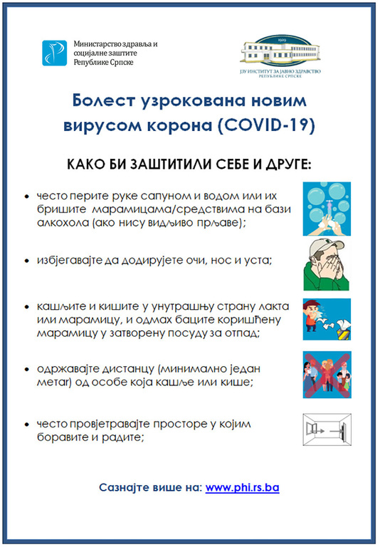 Materials prepared at the Public Health Institute of the Republic of Srpska, and related to the recommendations in the current epidemiological situation: