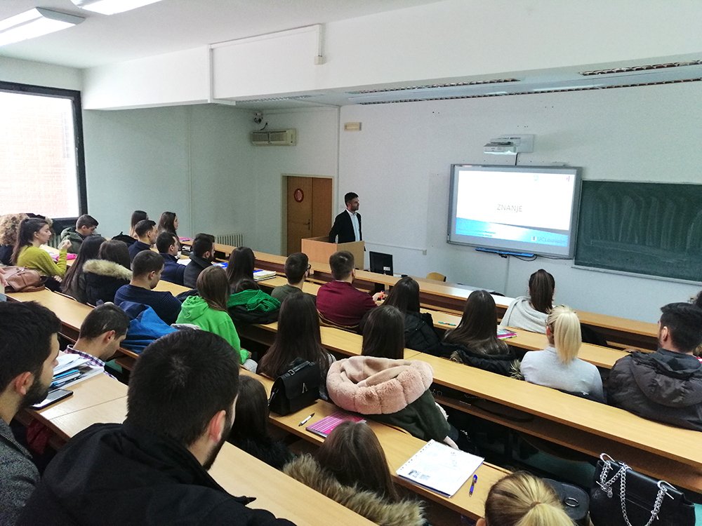 Dragan Vucic, PhD candidate at the Louvain School of Management, Center for Research in Entrepreneurial Change and Innovative Strategies - CRECIS, Université Catholique de Louvain in Belgium, alumni of the Faculty of Economics, University of Banja Luka and external expert - associate of CPME - Center for Project Management and Entrepreneurship of the Faculty of Economics in Banja Luka, held on Wednesday, 4 December 2019 guest lecture for the third year students on the topic "Knowledge - creation and use of knowledge".