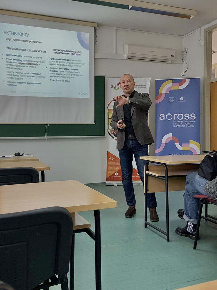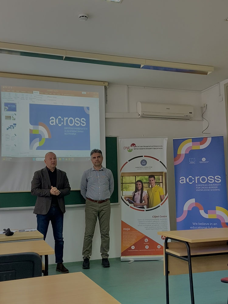 Проф. др Саша Петковић, руководилац CPME – Центра за пројектни менаџмент и предузетништво Економског факултета УНИБЛ, организатора радионице, представио је студентима и сарадницима са Економског и Електротехничког факултета, могућности развоја каријера у Across алијанси. Интерактивну радионицу одржао је мр Драган Вучић, оснивач и CEO иновативног стартапа Cyclos Systems d.o.o. Бања Лука, https://cyclossystems.com/, и докторанд Католичког ниверзитета у Лувену, Белгија, алумниста Економског факултета.
